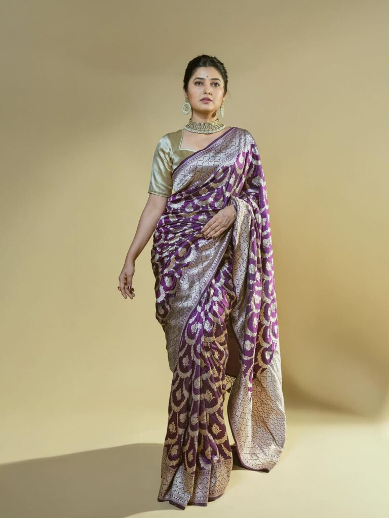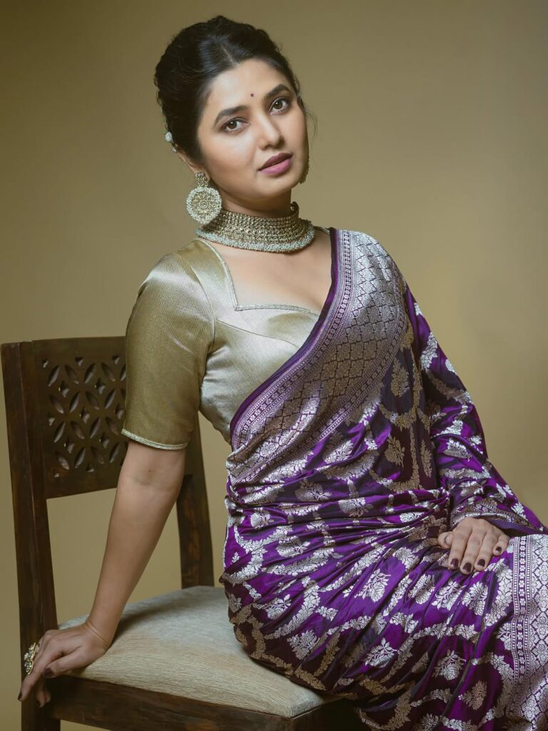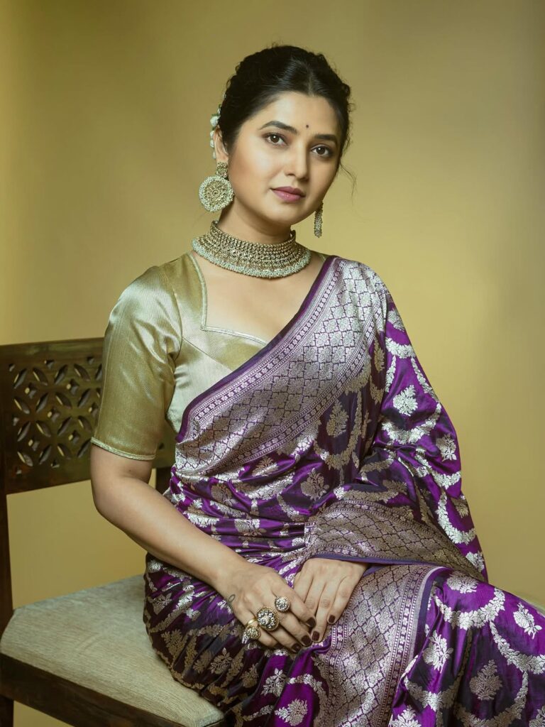 - The Authenticity of the Aesthetic: In an era of fleeting trends, Prajakta’s choice of a traditional Nauvari or a classic Paithani saree is a statement. It’s a deliberate move away from Western glamour, embracing an elegance that is intrinsically Maharashtrian. The drape is precise, the posture is graceful, and the entire presentation feels less like a “photoshoot” and more like a homage. She isn’t just wearing a saree; she is inhabiting its legacy.